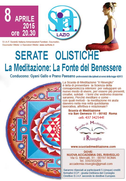 Siete in: Home » 1° SERATA OLISTICA – LA MEDITAZIONE: LA FONTE DEL BENESSERE -5 ECP » Eventi » 1° SERATA OLISTICA – LA MEDITAZIONE: LA FONTE DEL BENESSERE -5 ECP