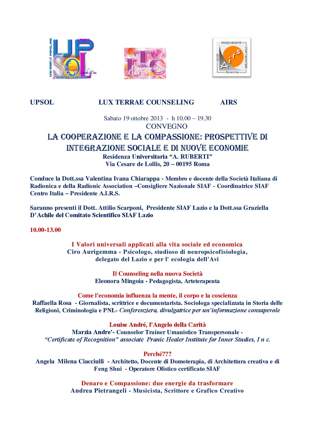 Siete in: Home » CONVEGNO “LA COOPERAZIONE E LA COMPASSIONE” » Eventi » CONVEGNO “LA COOPERAZIONE E LA COMPASSIONE”