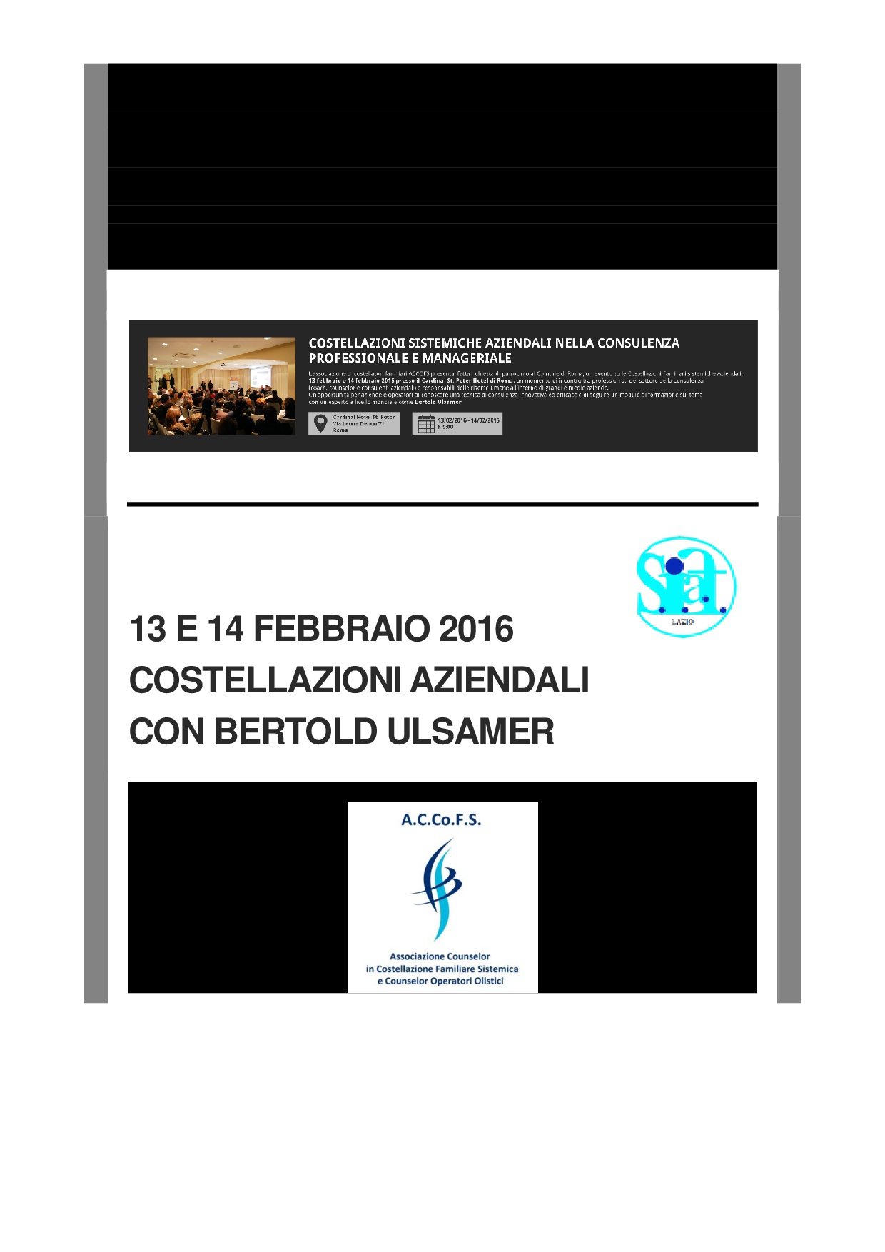 Siete in: Home » COSTELLAZIONI AZIENDALI CON BERTOLD ULSAMER – 13 e 14 febbraio- 16 ECP » Eventi » COSTELLAZIONI AZIENDALI CON BERTOLD ULSAMER – 13 e 14 febbraio- 16 ECP
