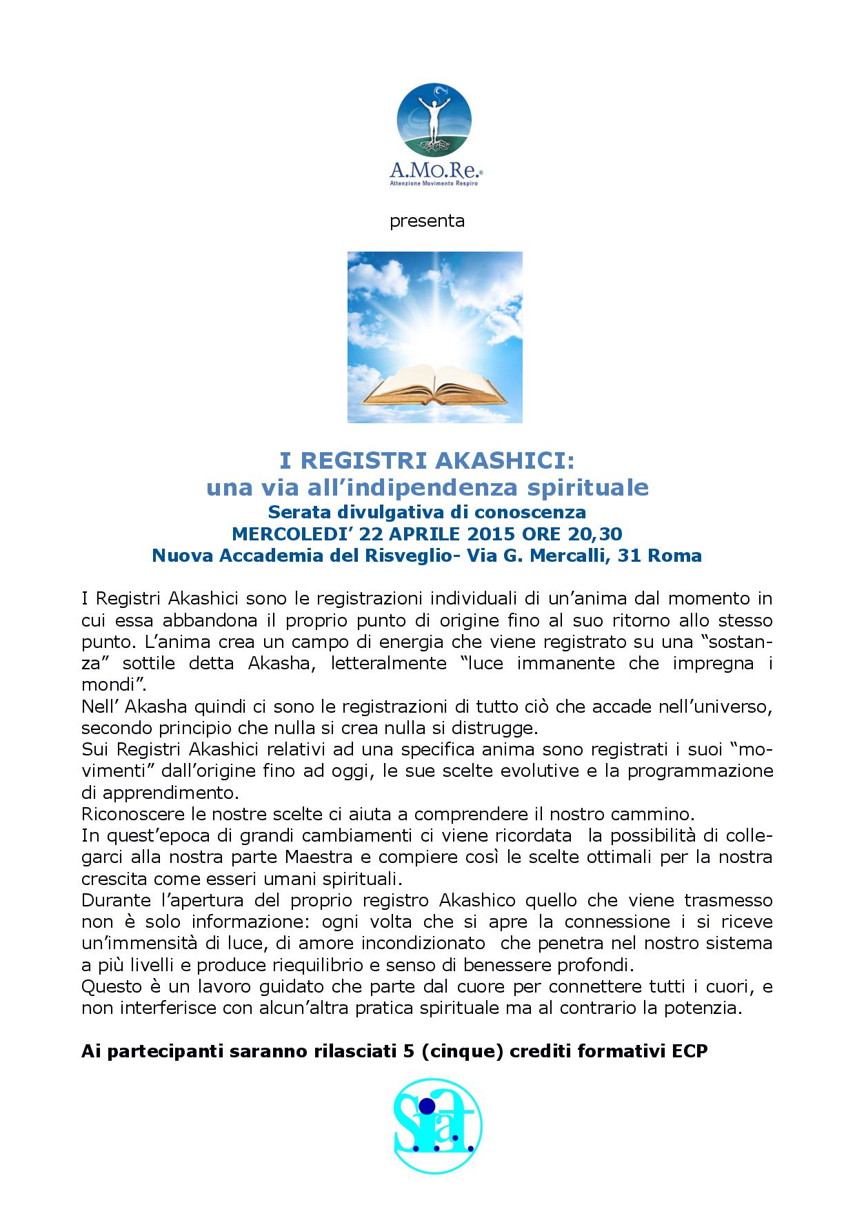 Siete in: Home » I REGISTRI AKASHICI: una via all’indipendenza spirituale – 5 ECP » Eventi » I REGISTRI AKASHICI: una via all’indipendenza spirituale – 5 ECP