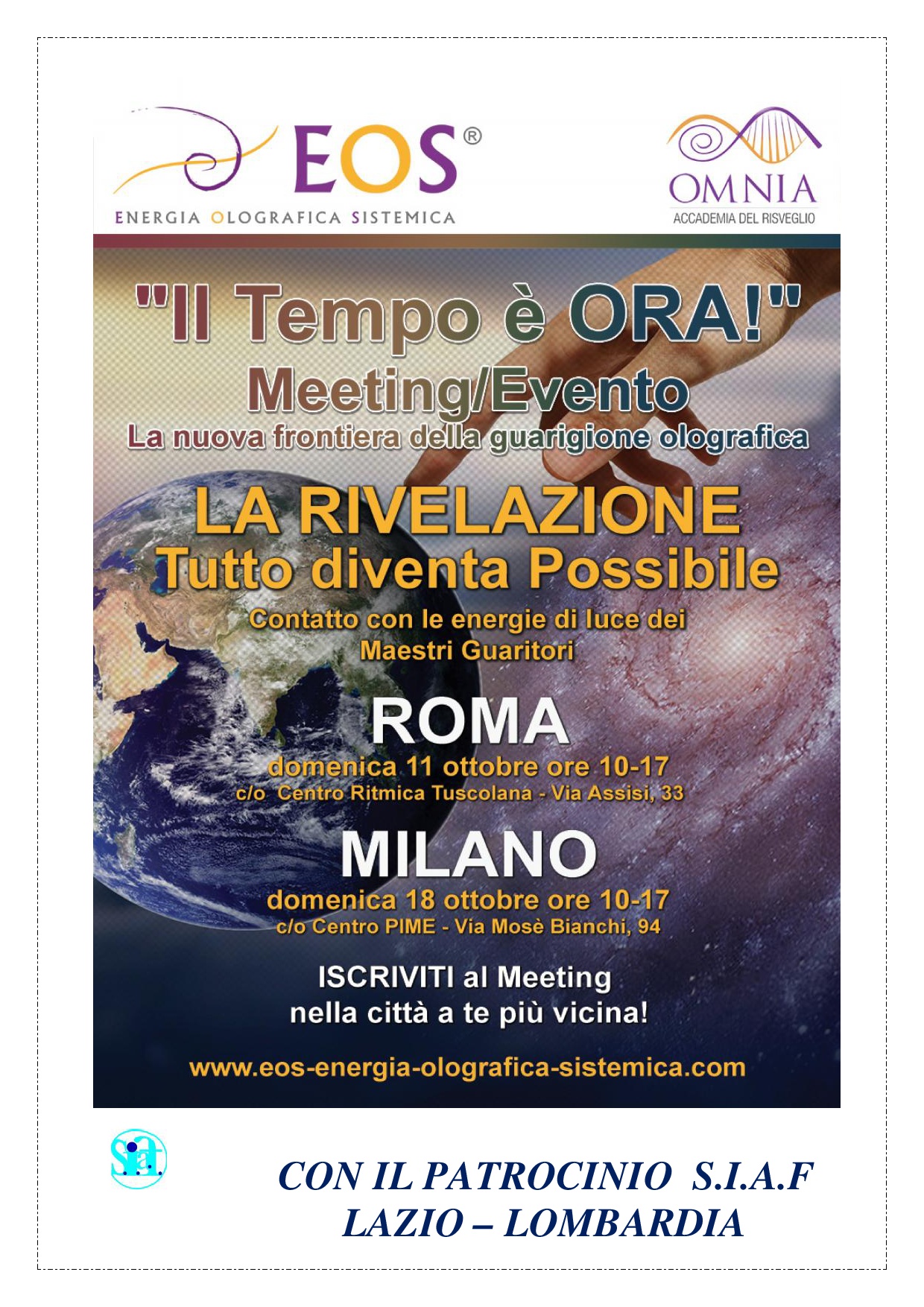 IL TEMPO E’ ORA – Meeting/Evento – LA RIVELAZIONE – Tutto diventa Possibile – 8 ECPPubblicato il 7 Ottobre 2015