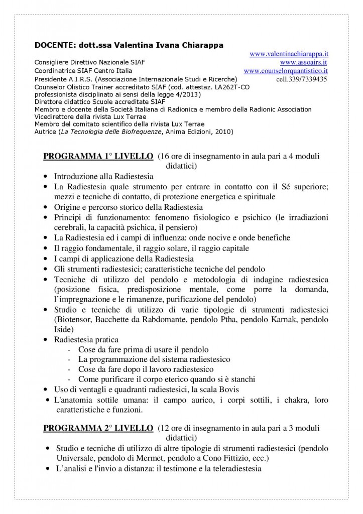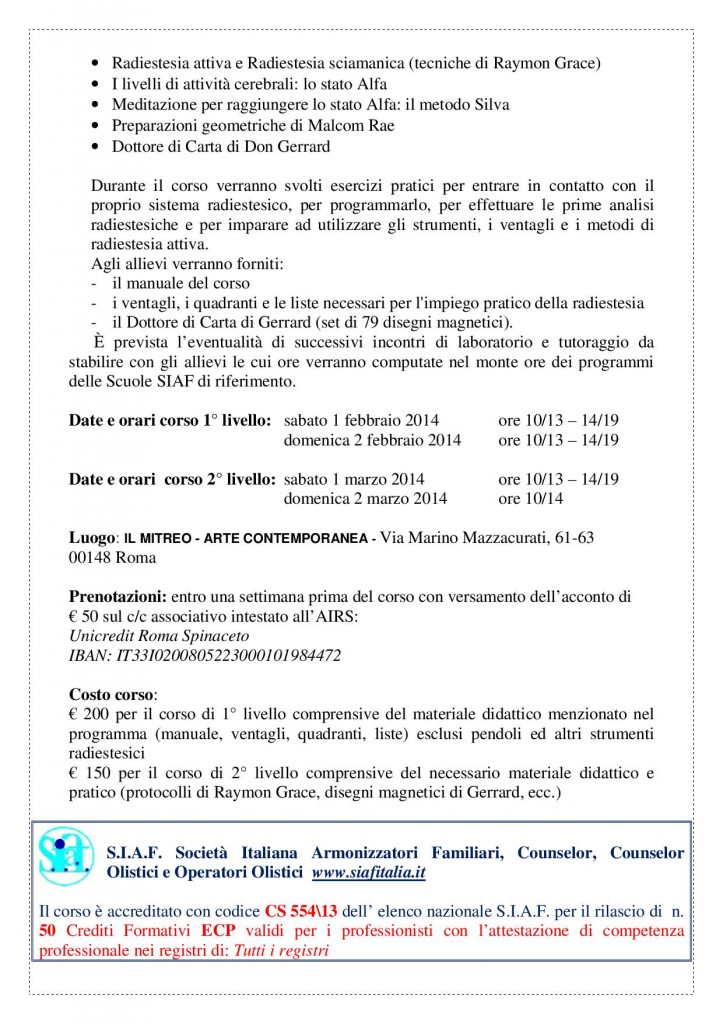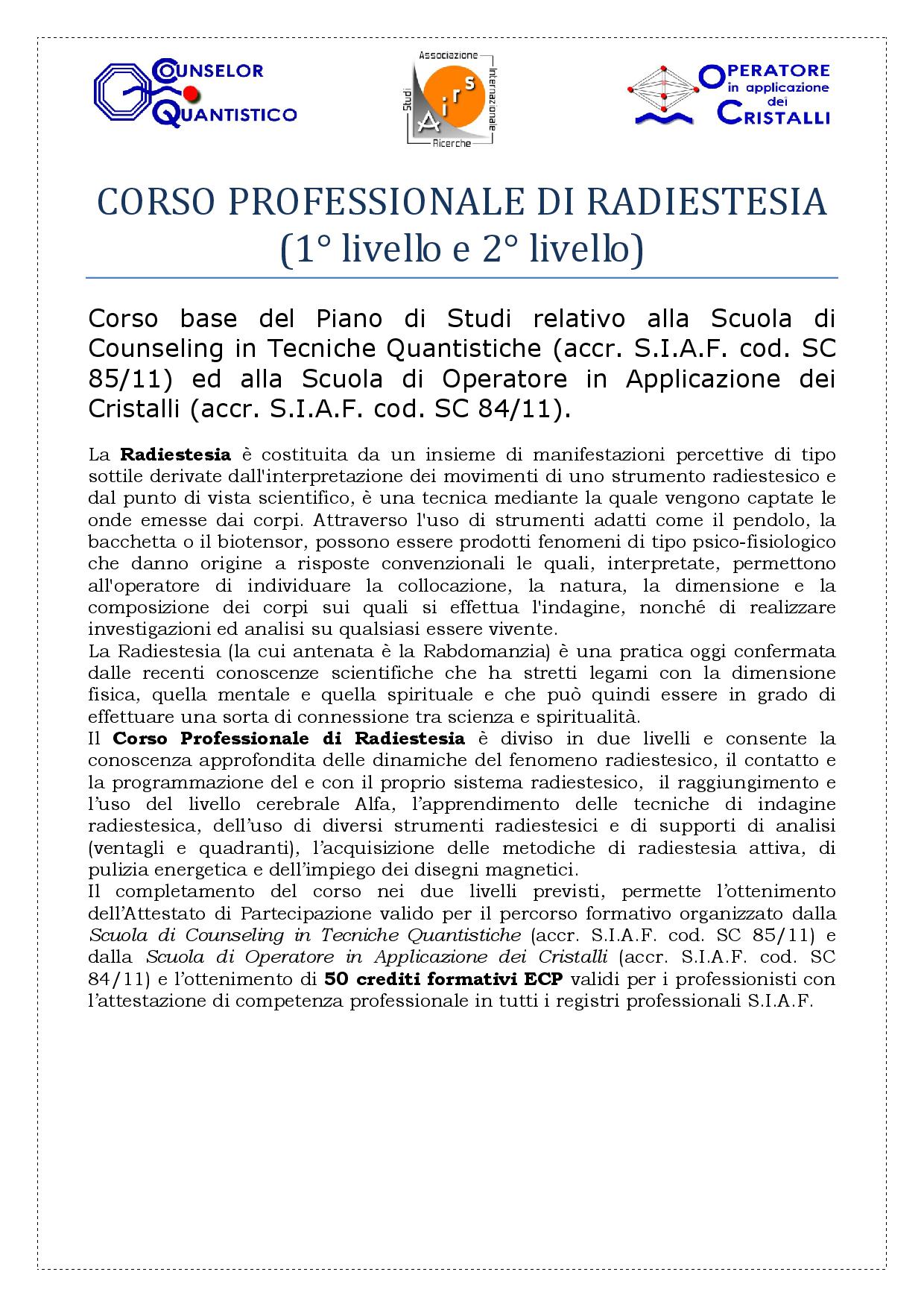 Siete in: Home » PROGRAMMA CORSO PROFESSIONALE DI RADIESTESIA » Eventi » PROGRAMMA CORSO PROFESSIONALE DI RADIESTESIA