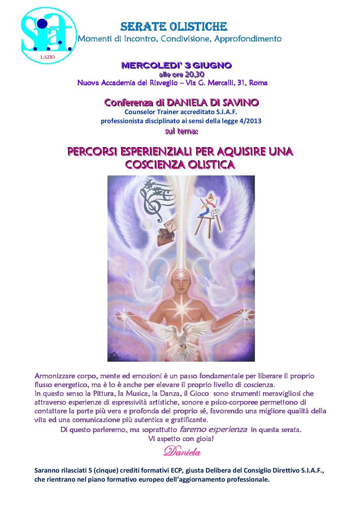 SERATA OLISTICA di DANIELA DI SAVINO- PERCORSI ESPERIENZIALI PER ACQUISIRE UNA COSCIENZA OLISTICA – 5 ECPPubblicato il 30 Maggio 2015