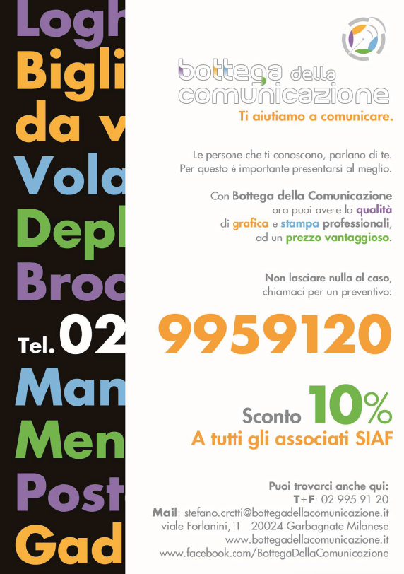 La Segreteria SIAF è aperta dal lunedì al venerdì dalle ore 08:30 alle ore 19:00Tel. e Fax 055 61 34 25